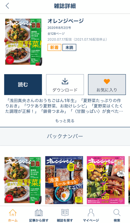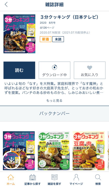 上記の例では、3分間クッキング8月号なら「2021年7月15日」まで、オレンジページ8月2日号なら「2021年7月16日」までなら読むことができます。